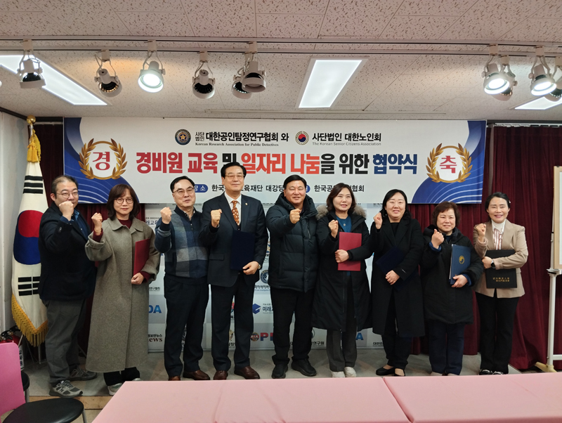 (사)대한노인회 일자리 창출 업무 협약 체결 2026년 1월 6일 사)대한공인탐정연구협회와 사)대한노인회는 경비원 취업 연계, 일자리 창출을 목적으로 업무제휴 협약식을 체결하였다. 이번 협약식에는 사단법인 대한노인회 지역센터 종로구·광진구·도봉구·은평구·서대문구·강북구 6개 지회가 참여해 의미를 더했으며, 고령층을 포함한 노인 구직자들의 안정적인 경비 분야 취업을 위한 일자리 창출 협력 체계를 구축하는 데 뜻을 모았다. |