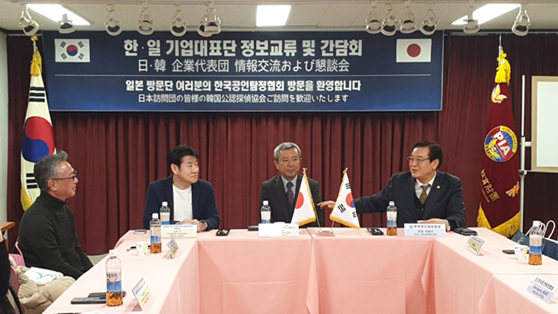 한국공인탐정협회는 2026년 1월 29일, 일본 주요 탐정기업 대표단과 함께 한·일 탐정산업 발전을 위한 정보교류 및 간담회를 개최했다고 밝혔다. 이번 간담회에는 한국 측에서 한국공인탐정협회 및 한국특수교육재단 하금석 회장, 국제사건 담당 유광운 이사 등이 참석했으며, 일본 측에서는 현 일본조사협회 회장 카나자와 히데노리, ㈜사쿠라사치코 탐정사무소 야마다 사토시 대표이사 등 일본 탐정업계를 대표하는 주요 인사들이 함께했다. |