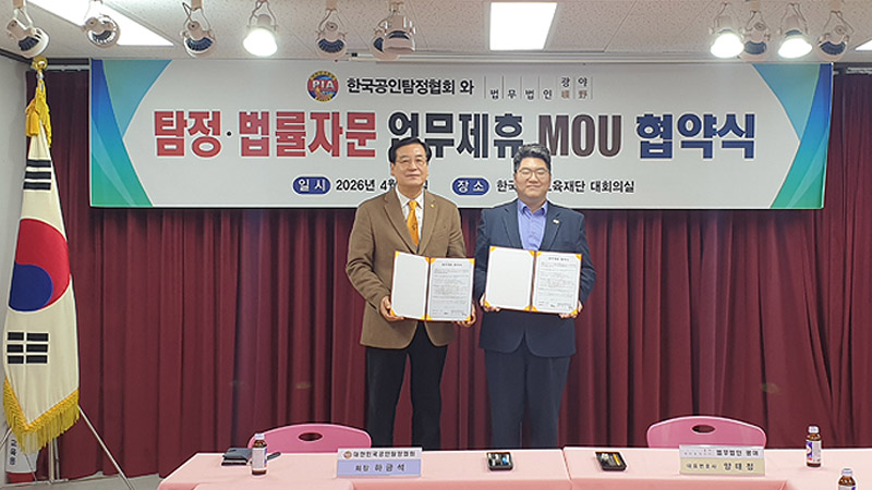 ![]() ![]() ![]() ![]() 탐정·법률 분야 협력 강화를 위한 3자 업무협약(MOU) 체결 - 탐정업무와 법률자문 연계를 통한 전문 서비스 체계 구축 - 2026년 4월 10일, 한국특수교육재단 / 한국공인탐정협회(PIA)와 법무법인 광야가 탐정 및 법률 분야의 상호 협력 강화를 위한 업무협약(MOU)을 체결했다. |